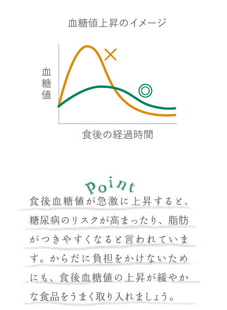 お⾷事前にティースプーン1杯お召し上がりいただくことで、⾷後⾎糖値の上昇を緩やかにしてくれます。