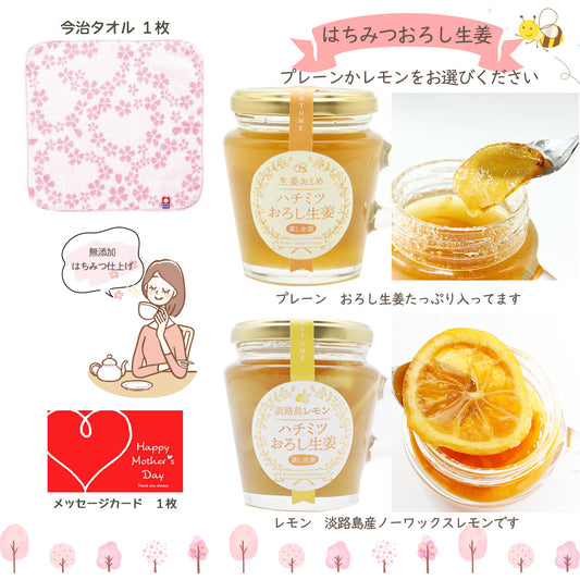 【超早割】母の日ギフト2026 無添加はちみつ生姜(プレーンorレモン)+今治さくらハンカチのセット