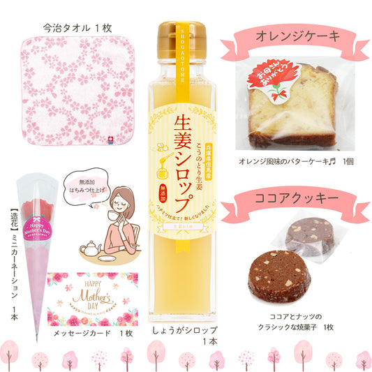 母の日ギフト無添加生姜シロップ+今治のさくらハンカチ+焼菓子2種セット